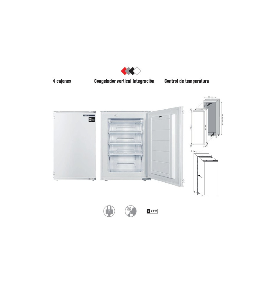 - Otras características: Patas regulables en altura / Puerta reversible con sello-cierre magnético / Capacidad de congelación en 24h (3KG)